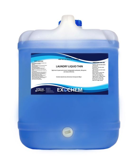 Laundry liquid thin is a heavy duty detergent that cuts through grease, oil and stains for effective cleaning results. It has a lavendar frangrance and quickly penetrates soils, improving the whiteness and brightness of fabrics. It is biodegradable and phosphate free.