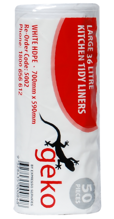 Expresso's own premium brand of Geko Kitchen Tidy Bin Bags. These HDPE bags are ideal for bathroom, kitchen and bedroom bins. They are made from 100% recyclable materials.