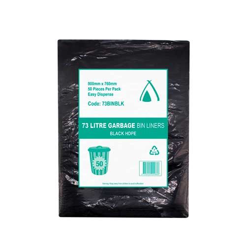 All purpose HDPE 73L black garbage bags. They are ideal for light to mid-weight applications in washrooms, offices, restaurants, schools and councils etc.