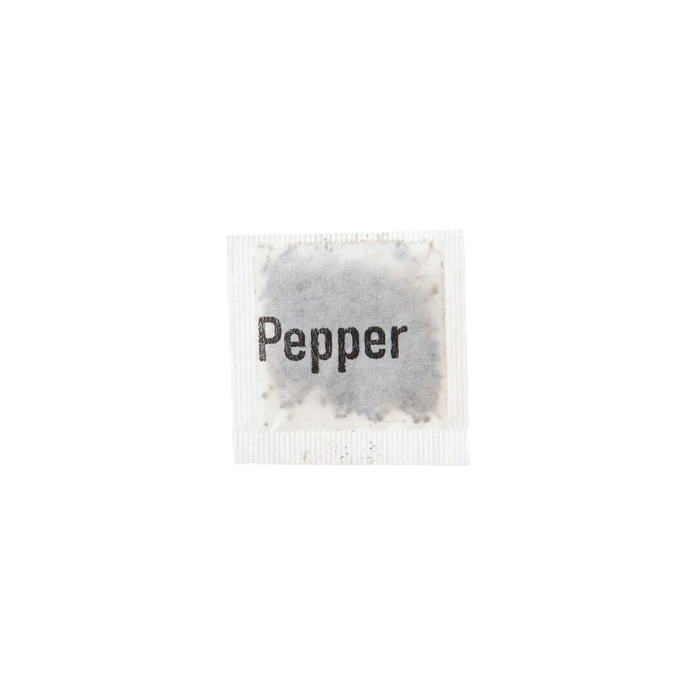 Individual portioned ISM pepper sachets. The sachet contains 1 teaspoon of pepper and is perfect for any type of hospitality environment.