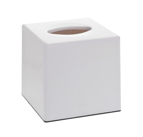 White cube tissue box dispenser, for a tidy and sleek look. Simply pull the top cover from the base plate to refill.