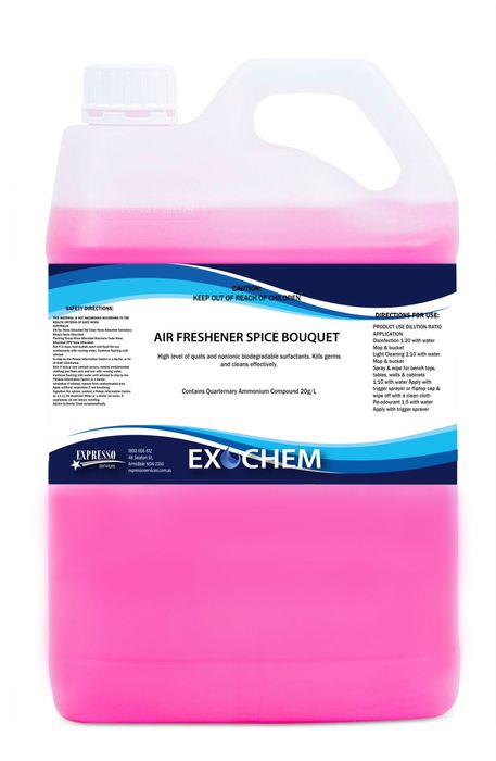 This Spice scented Air Freshener is a specially formulated, alcohol based, air freshener and deodoriser. It kills 99.9% of bacteria and removes unwanted, unpleaseant odours. It can be sprayed in the air through a spray trigger, or applied directly onto surfaces like tiled areas behind toilets and drains.