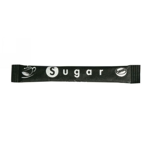 Individual sticks of sugar. The sachet contains 1 teaspoon of sugar and is perfect for any type of hospitality environment.