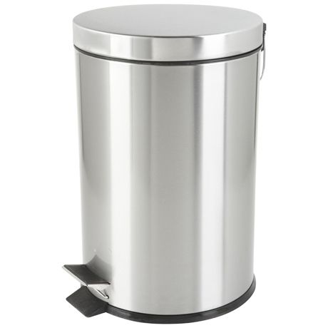 A brushed stainless steel (fingerprint resistant) pedal bin for use in any environment. It consists of a durable inner bin with a handle, and a non-slip foot pedal and non-marking base.