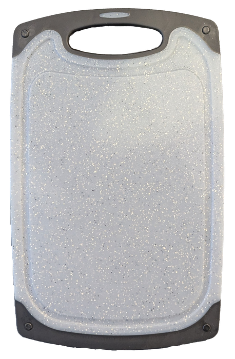 Stone look cutting board with anti-slip edges; a necessary addition to any kitchen space.
