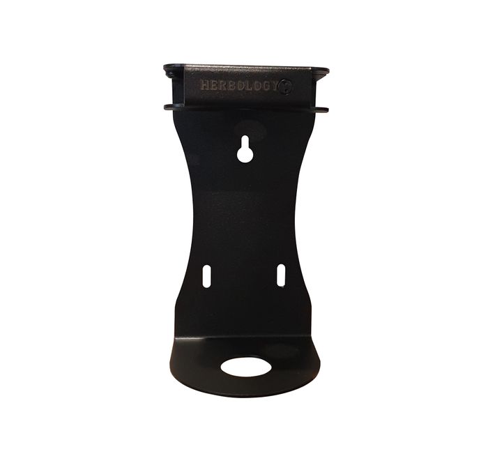 A black powdercoated stainless steel bracket to hold 1 of the 500ml Herbology bottles. The metal bracket is wall mountable and lockable.