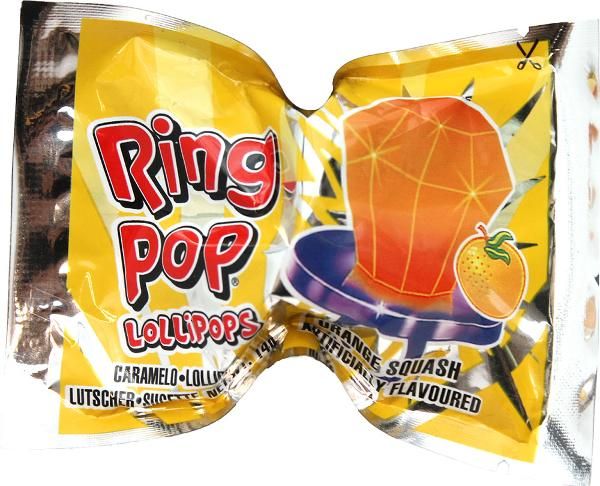 Enjoy candy wherever you go with the Ring Pop! The wearable plastic ring with a large hard candy ‘jewel’ comes in an assortment of flavours including: orange squash, grape, strawberry and blackcurrant.