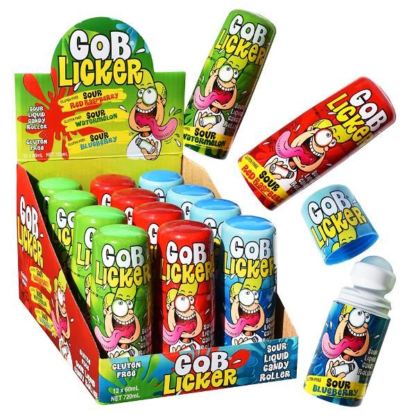 These Gob Licker sour liquid candy rollers come in 3 flavours including: Sour Watermelon, Red Raspberry and Sour Blueberry. Gluten free.