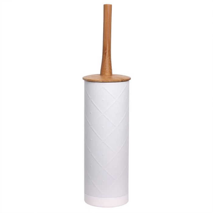 Embossed Toilet tidy set with a stylish bamboo and embossed finish. The rounded brush head cleans tight corners with ease and it has a removable base for easy cleaning. It features a rounded brush head for tight corners and tough durable bristles for an hygienic clean.