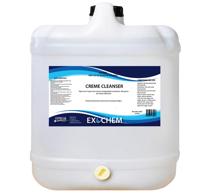 Creme Cleanser has a combination of powerful detergents and polishing agents, which leaves any surface smooth and shiny, with a fresh lemon fragrance. It is a mild abrasive that will not leave scratch marks or damage surfaces. Creme cleanser has been designed to clean caked on dirt and grime, soap scum, watermarks and other impurities from a variety of surfaces, such as stovetops, stainless steel pots and pans, sinks, taps, whitegoods and benchtops. It can also be used in the bathroom and laundry to remove dirt, soap and mould from showers, sinks, taps, baths, toilets and tiled areas.