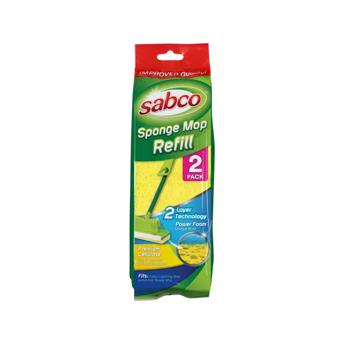 These squeeze mop refills fit all Sabco squeeze mops. The 100% cellulose sponge takes care of large spills, stains, dirt and grime with ease and the scourer on the mop head assists with those stubborn marks.
