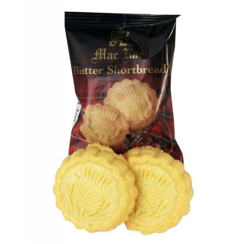 Each pack of the Mac's contains two thistle-embossed Butter Shortbread biscuits, wrapped in a plastic tartan wrapper, which keeps the product fresh for extended periods. This biscuits are Nut, Seed and Egg Free.