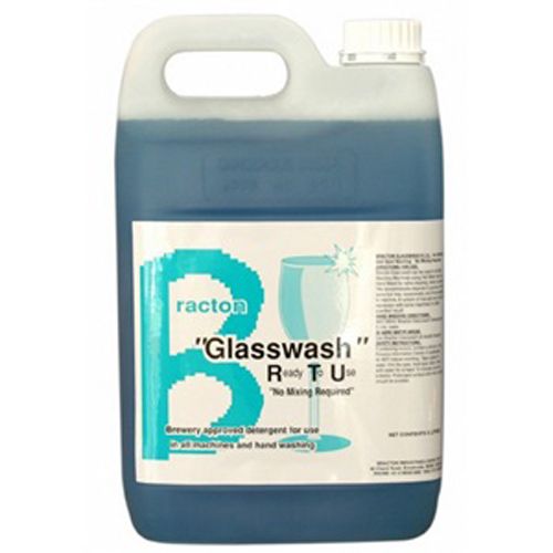 Bracton R.T.U (Ready to Use) is a pre-diluted detergent suitable for all glasswashing machines. Bracton R.T.U makes it easy to fill detergent reservoirs, as no mixing is required. May also be used to hand wash glasses. This chemical helps prevent streaking of glasses, mould and fungus growth within machines and also reduces corrosion and scaling. It is a non-hazardous formula, and also has descaling properties to help maintain clean hygienic equipment. It's features and benefits include: