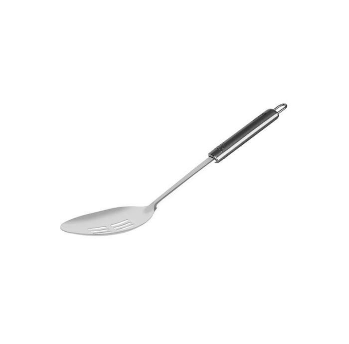Stainless steel perforated (slotted) spoon, perfect for draining pastas and so on.